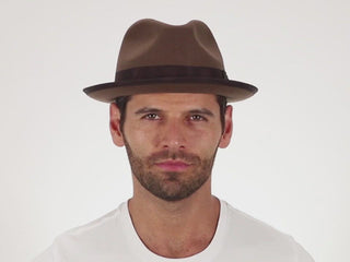 The Layover is your ticket to an easy, breezy, and regally relaxed style. This fine hat features all the hallmarks of a traditional fedora including a pinched crown, snap brim, and a delightfully thick grosgrain hatband bearing a Walrus Hats pin. Wear the brim snapped up for a classic look or snap it down over your forehead to create an air of mystique! At its highest point, the crown height is approximately 3.875". This hat is featured in four colors for endless mixing and matching possibilities. Whether you prefer a classic look or a touch of modern-chic, the Layover should be your first and last stop on the way to effortless style!