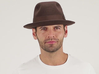 The undeniable look of the Stetson Frederick Wool Felt Fedora Hat is something that will never go out of style. Whether you are accessorizing the hat with your favorite shirt and pair of jeans or a casual suit, you will certainly be turning some heads with this timeless classic. The red removable feather and Stetson pin really accentuates the wide ribbon hat band. The interior of the hat is fully lined, finished with a leather sweatband. A truly classic look.